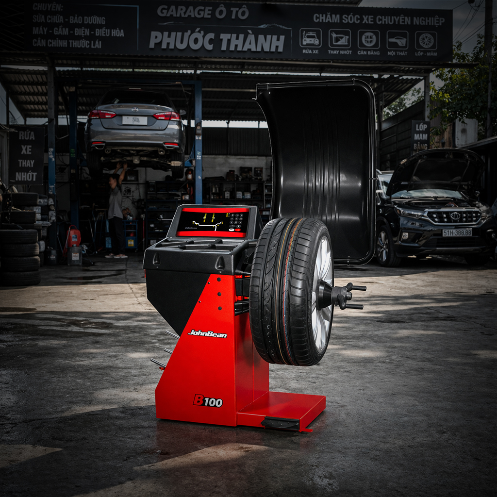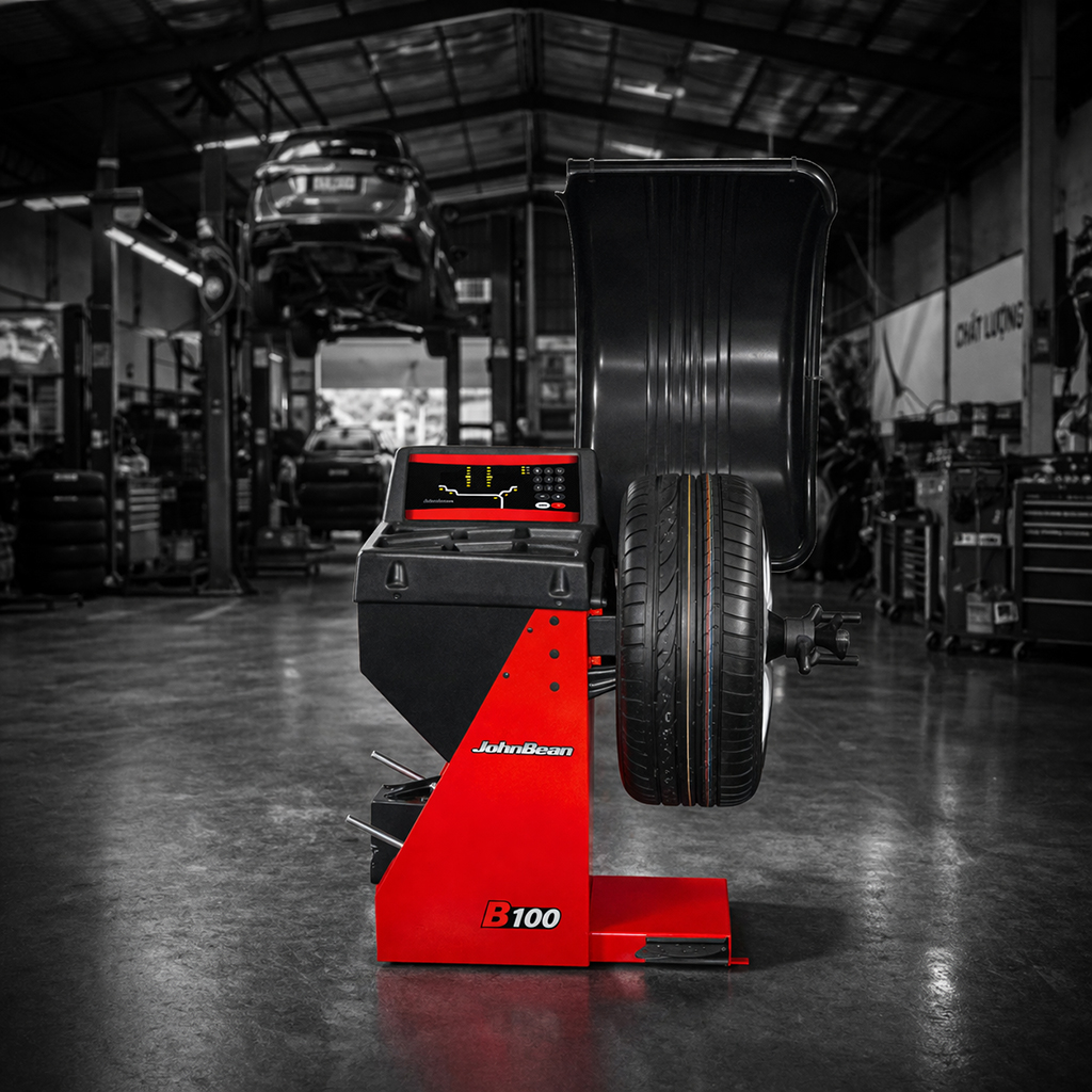 Máy cân bằng động bánh xe JohnBean B100 dành cho các trạm dịch vụ và xe ô tô có khối lượng công việc thấp.